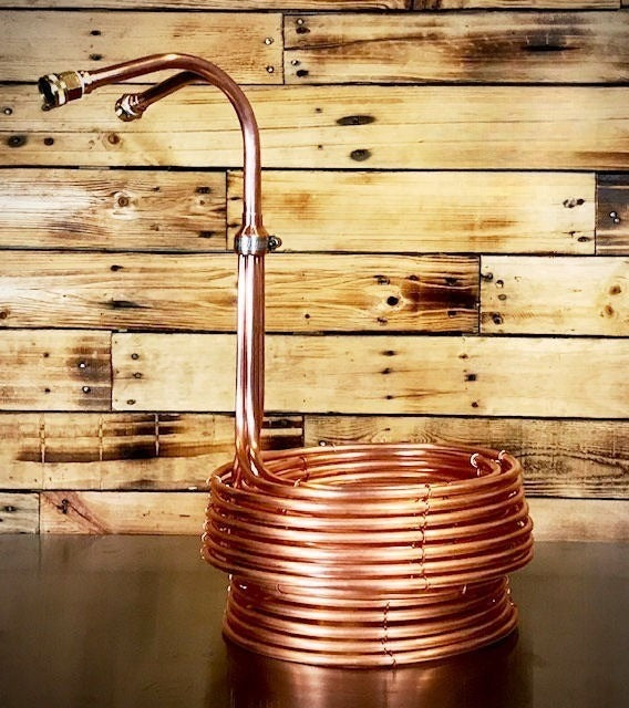 The smaller diameter bottom coil rests on the flat bottom of your boil kettle within your heating element so that all of the chiller's weight rests on your kettle bottom and no contact occurs between your element and the chiller. The two upper concentric coils flare out above your heating element, yet maintain a low profile to keep the chilling coils submerged in the wort, maximizing the chilling power!